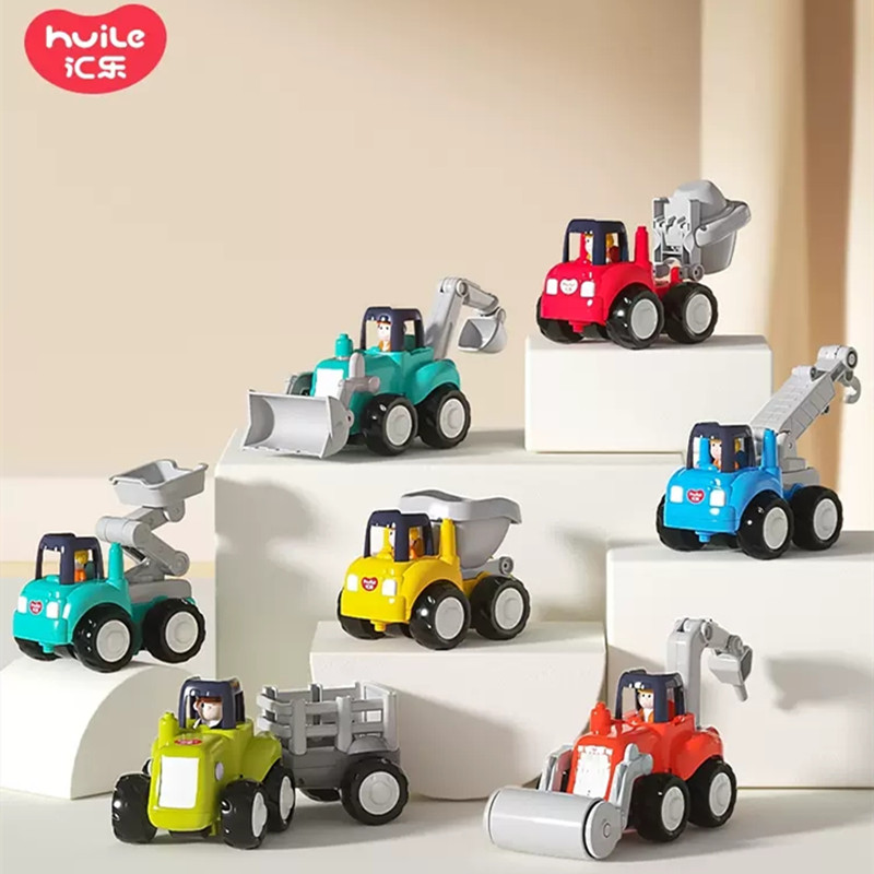 汇乐工程车男孩小汽车压路机模型玩具钻地机玩具惯性滑行玩具车,双向行驶惯性驱动,仿真造型多关节可动,轻巧易握随带随玩。