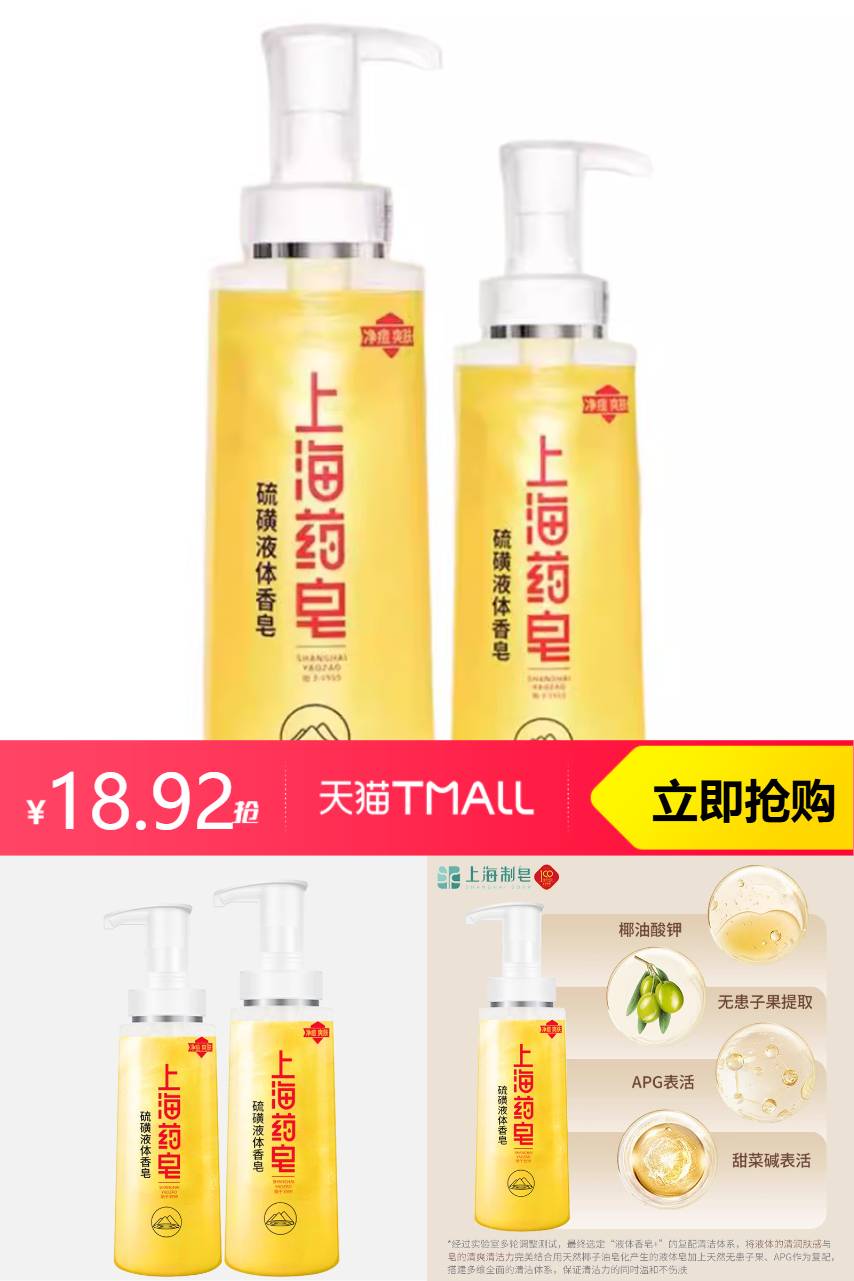 上海药皂液体硫磺300g硫磺皂85g*2 38元减20 商品纠错