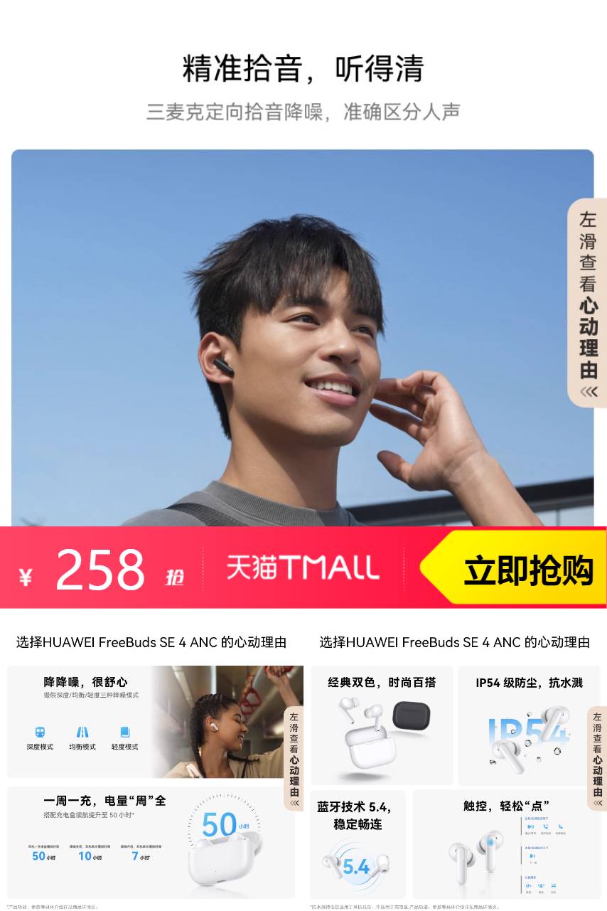 华为FreeBuds SE4ANC降噪版 299元减41 商品纠错