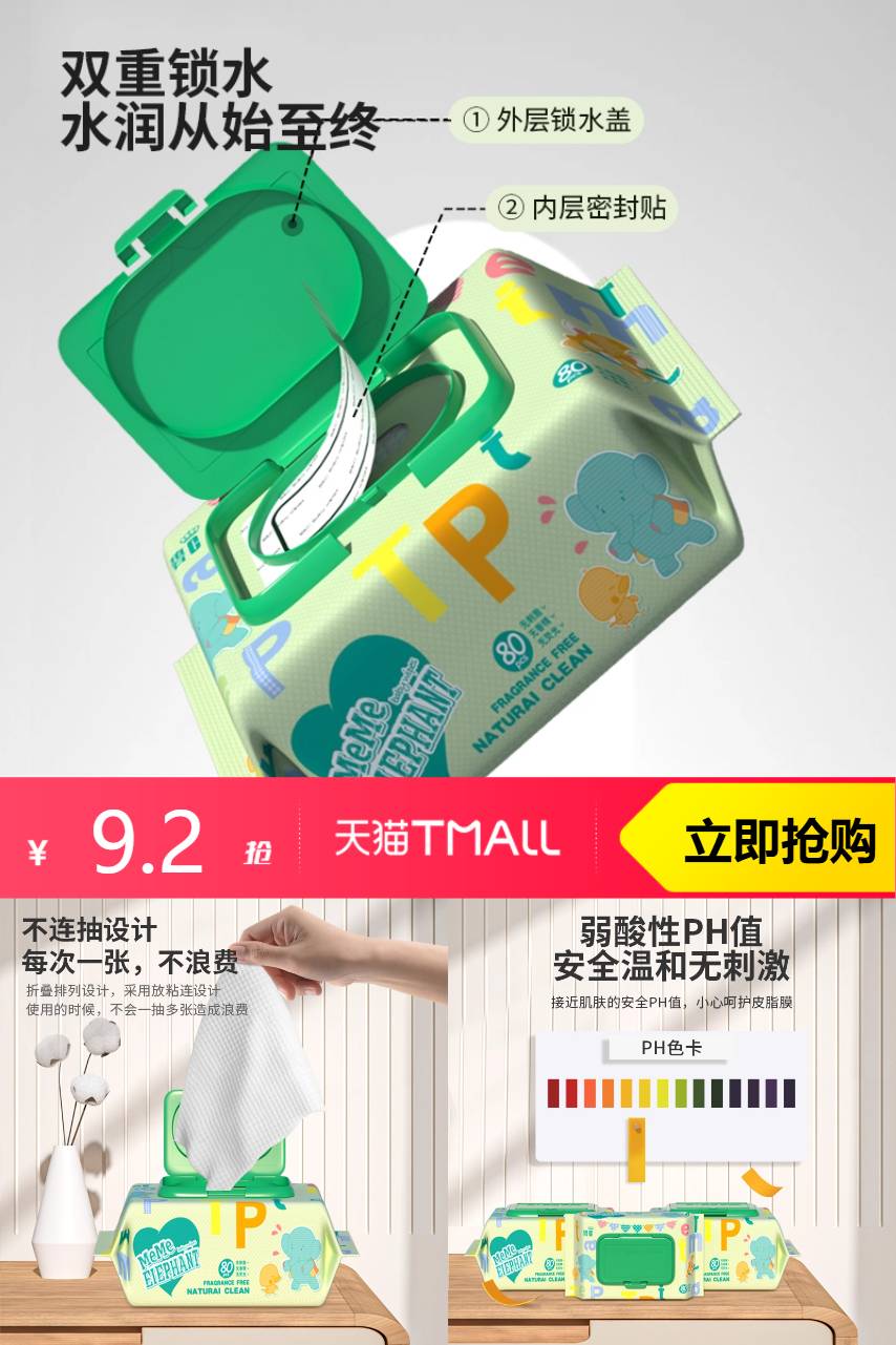 【碧c】婴儿专用湿巾纸80抽*5包 9.99元减0.79 商品纠错