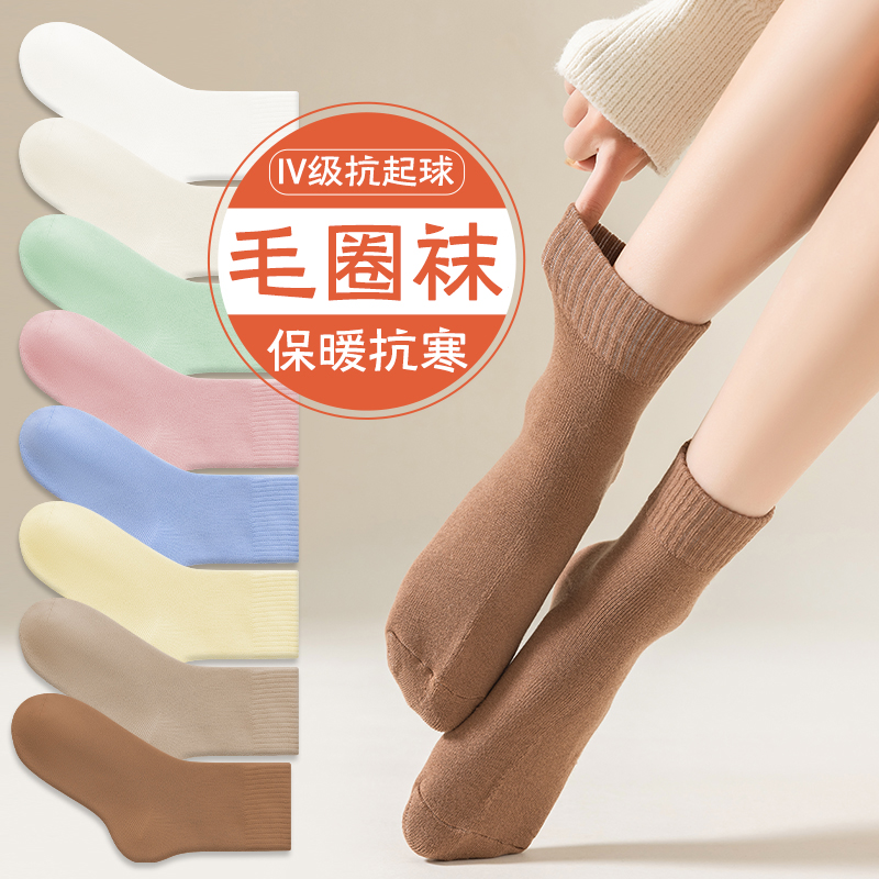 ⭕亲芙米袜子女中筒袜秋冬毛圈袜