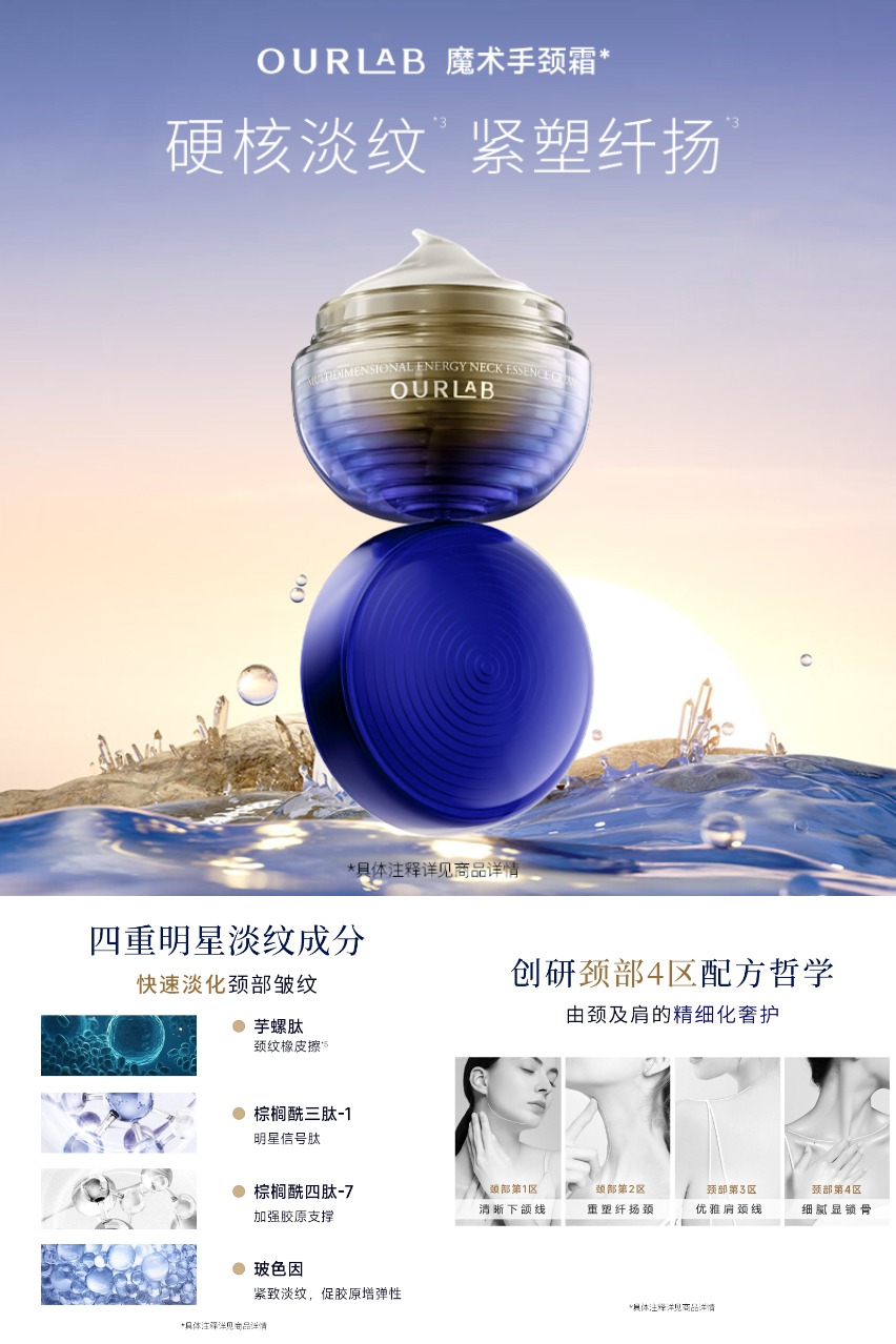 【赠同款颈霜10g*2+光蕴凝时面膜2片】OURLAB颈部精华霜,添加四重明星淡纹成分,快速淡化颈部皱纹!!精油入霜,质地盈润轻薄,触肤即融!