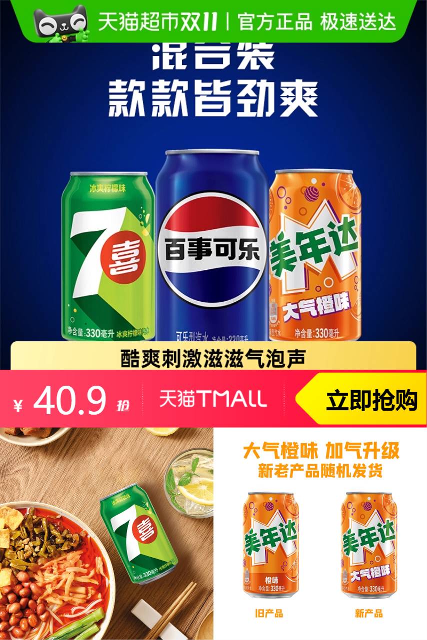 【淘金币1.99,猫超价到礼金2.86,到手36.05】百事可乐碳酸饮料混合口味330ml*24,冰块撞击,奏响加倍劲爽~