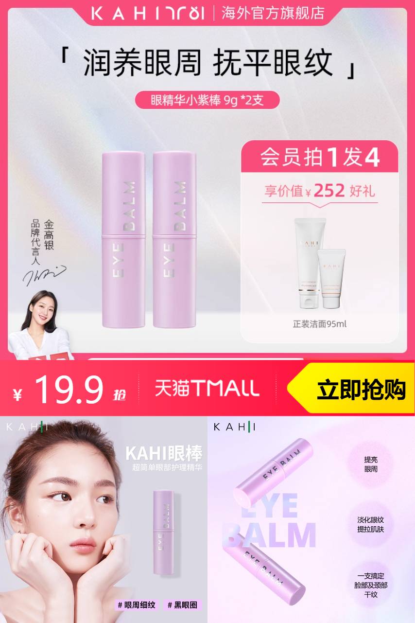 【原价400,领券立减50,官方立减176,店铺券减154.1】精华眼霜棒改善眼纹KAHI韩国金高银2支,每天早晚涂抹,像为眼睛穿上了一层保护罩,温和而强大。每次涂抹时,仿佛感觉到肌肤在享受SPA般,不再害怕岁月的痕迹了!