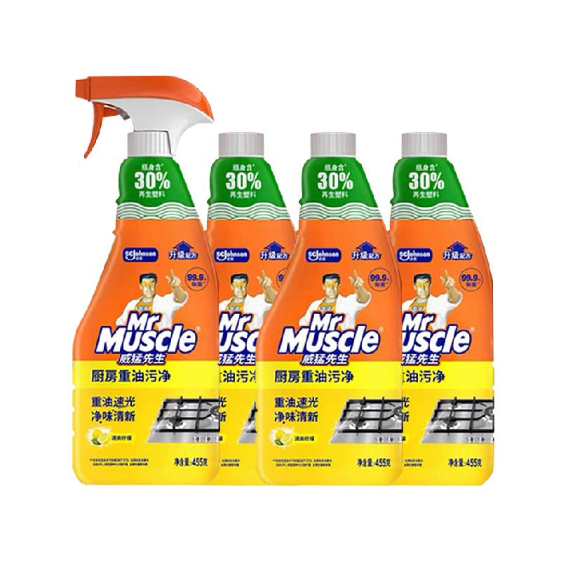 【下拉详情页点淘金币加购,有限时淘金币可以抵扣4.98,88vip叠加淘金币到手30】威猛先生厨房清洁剂油污净455g*4瓶~