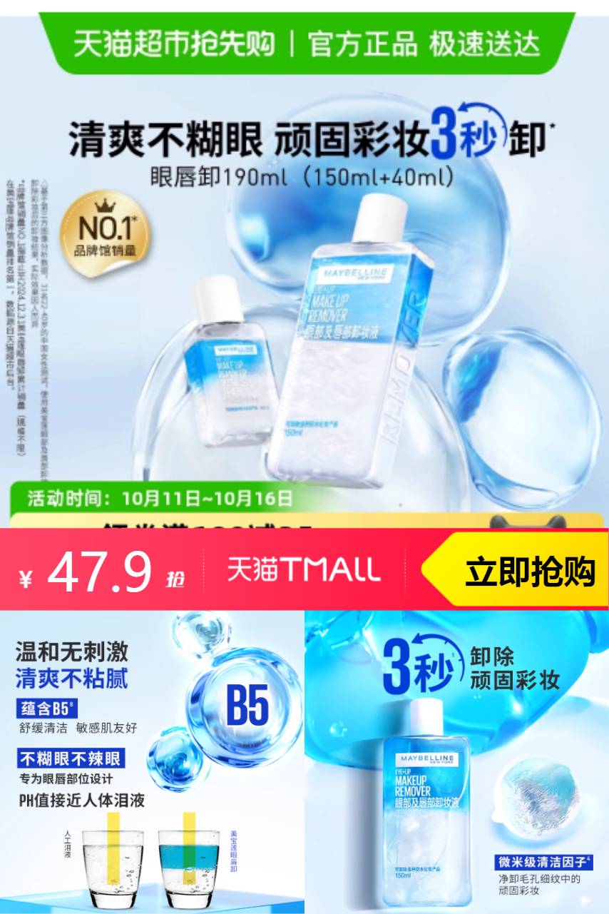 推荐:美宝莲眼唇卸妆水眼唇卸妆液190ml组合