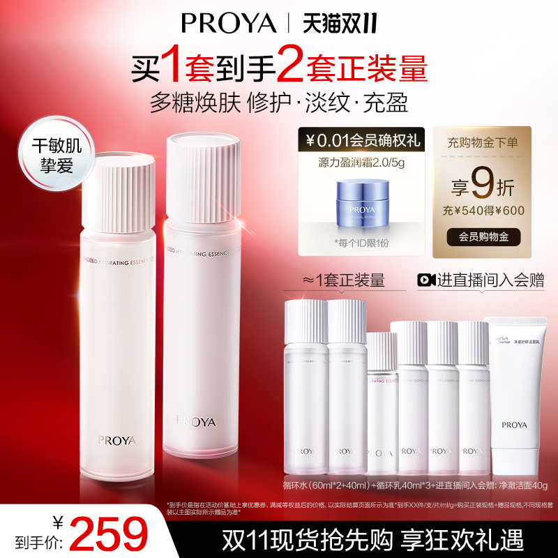 赠循环水(60ml*2+40ml)+循环乳40ml*3;直播间加赠洁面40ml,买一套到手2套正装量,多糖换肤,淡纹,充盈,多糖焕新肌愈现年轻力!