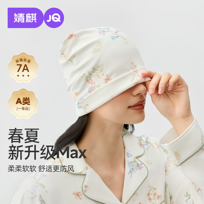 推荐:婧麒春夏季薄款纯棉产妇帽
