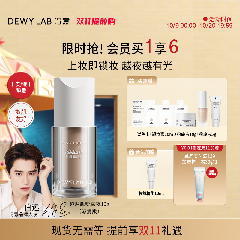 淂意得意超贴瓶晨露粉底液是专门为干皮设计的一款滋润型粉底液,能够提供持久的保湿效果,使肌肤看起来更加水润自然。这款产品特别适合那些追求妆容的干性皮肤女性使用,能够轻松打造出自然、服帖的妆效。无论是日常妆容还是重要场合,都能够让你的妆容持久而不失光彩。