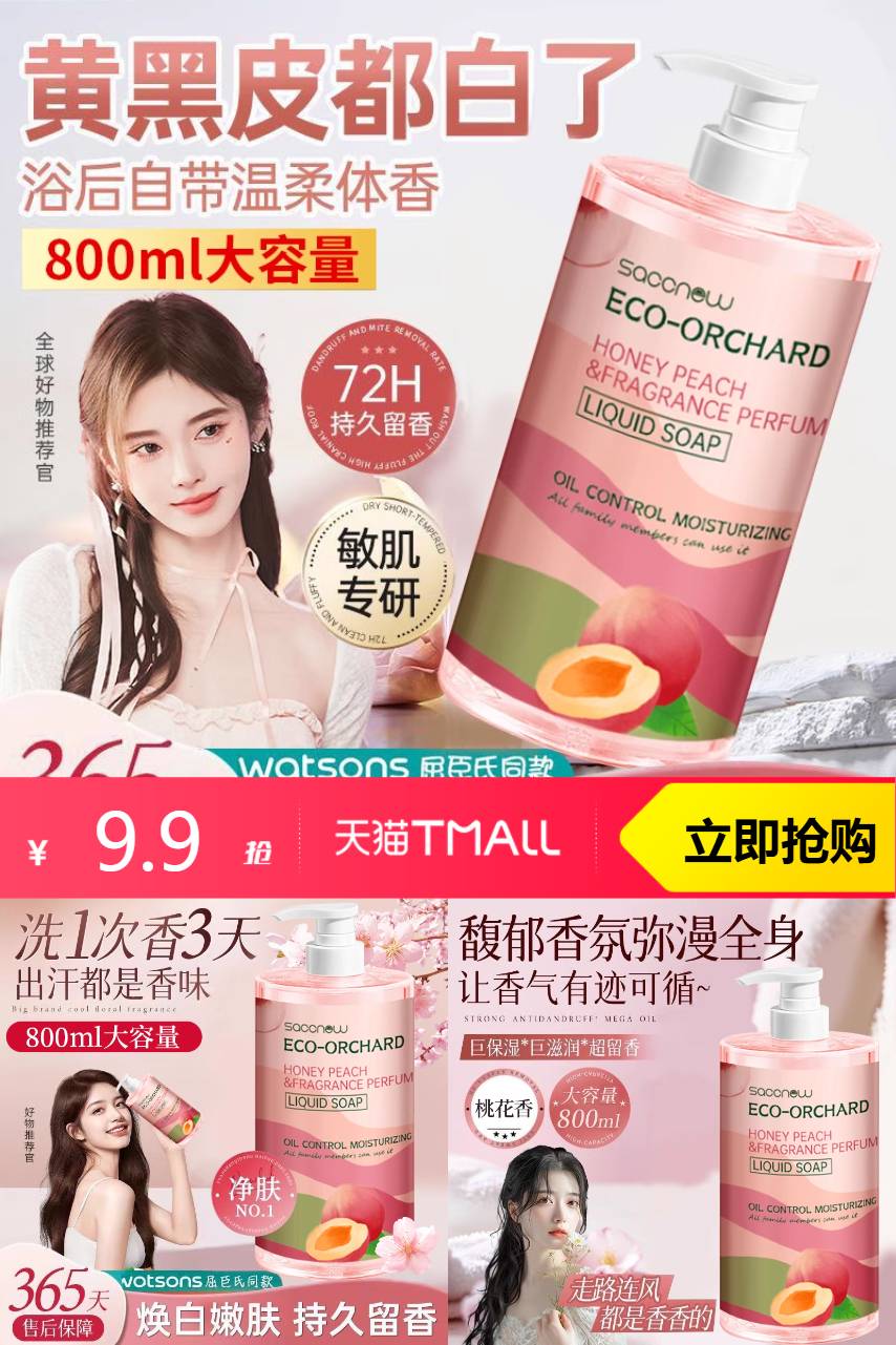 推荐:桃桃香氛沐浴露温和清洁控油去痘800ml