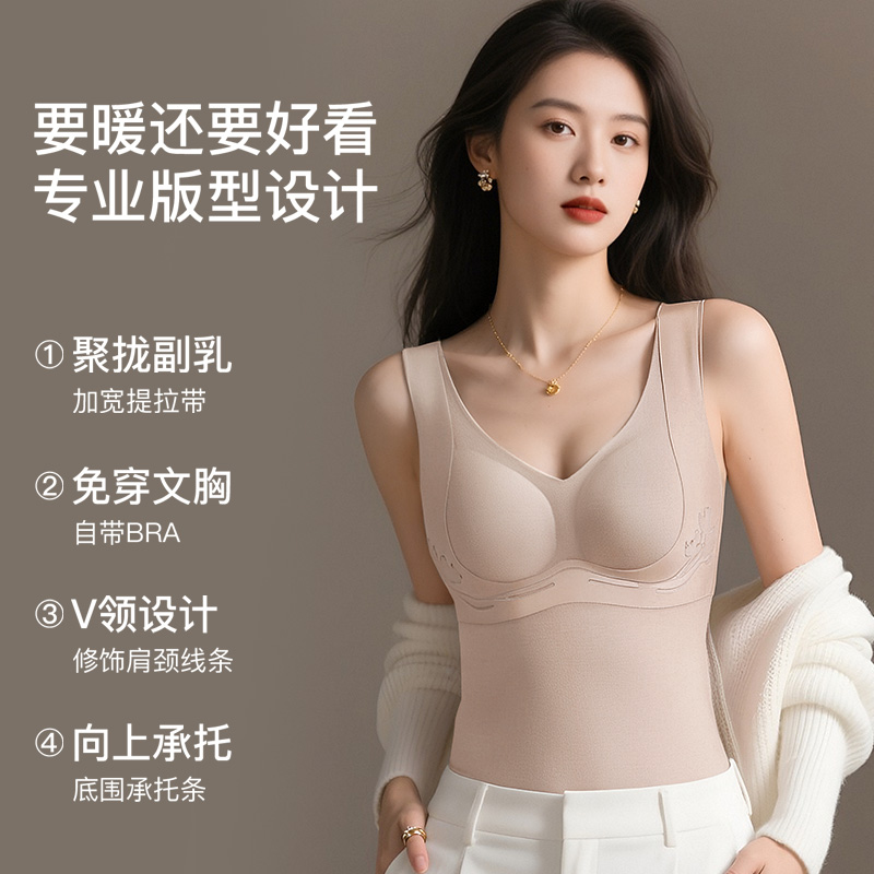 ⭕润微免穿文胸带胸垫保暖背心磨绒保暖内衣