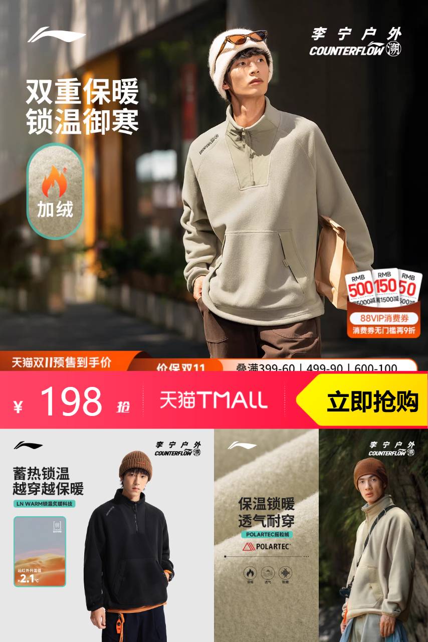⭕【双11预售】李宁户外CF溯套头摇粒绒男