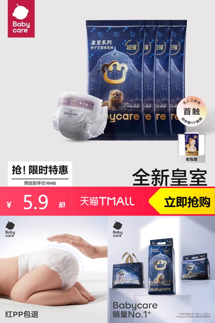 【新客5.9到手4片!尺码任选】Babycare 的每一片纸尿裤从原料选取、检测生产,到包装运输于 10 万级净化无尘车间里由机器全自动操作,避免人工污染~
