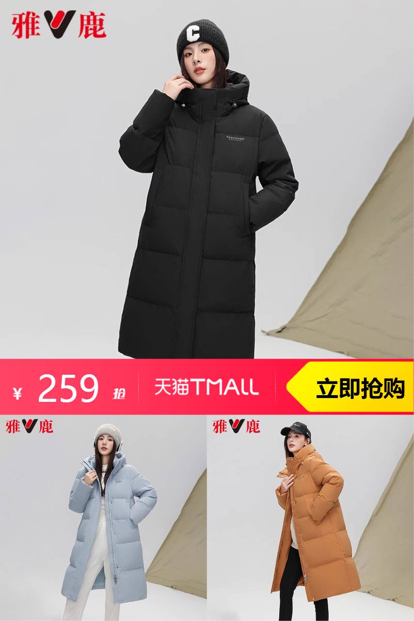 ⭕雅鹿羽绒服新款中长款纯色连帽加厚通勤外套