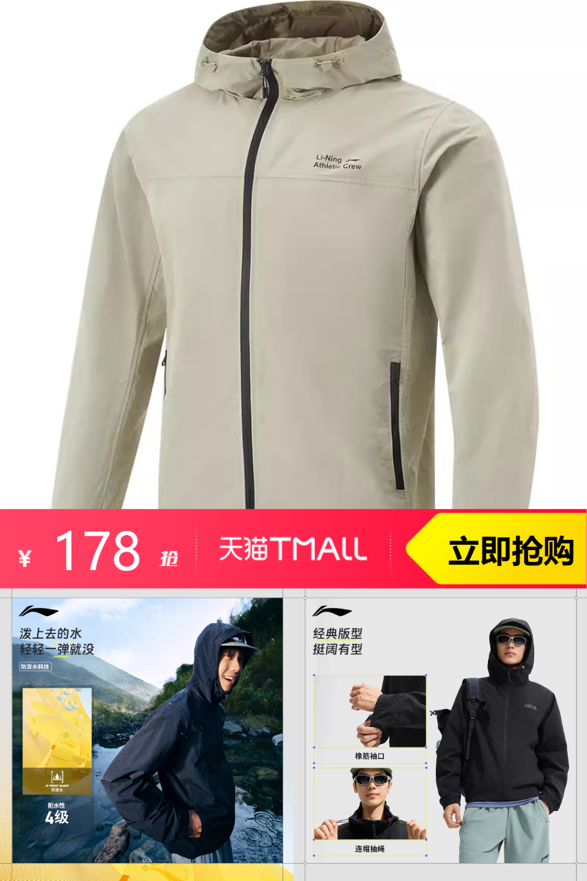 【预售前台价178,可以叠大额券,消费券,购物金,不能叠运动户外券】李宁外套男秋冬季新款夹克,拒水防泼轻量出行