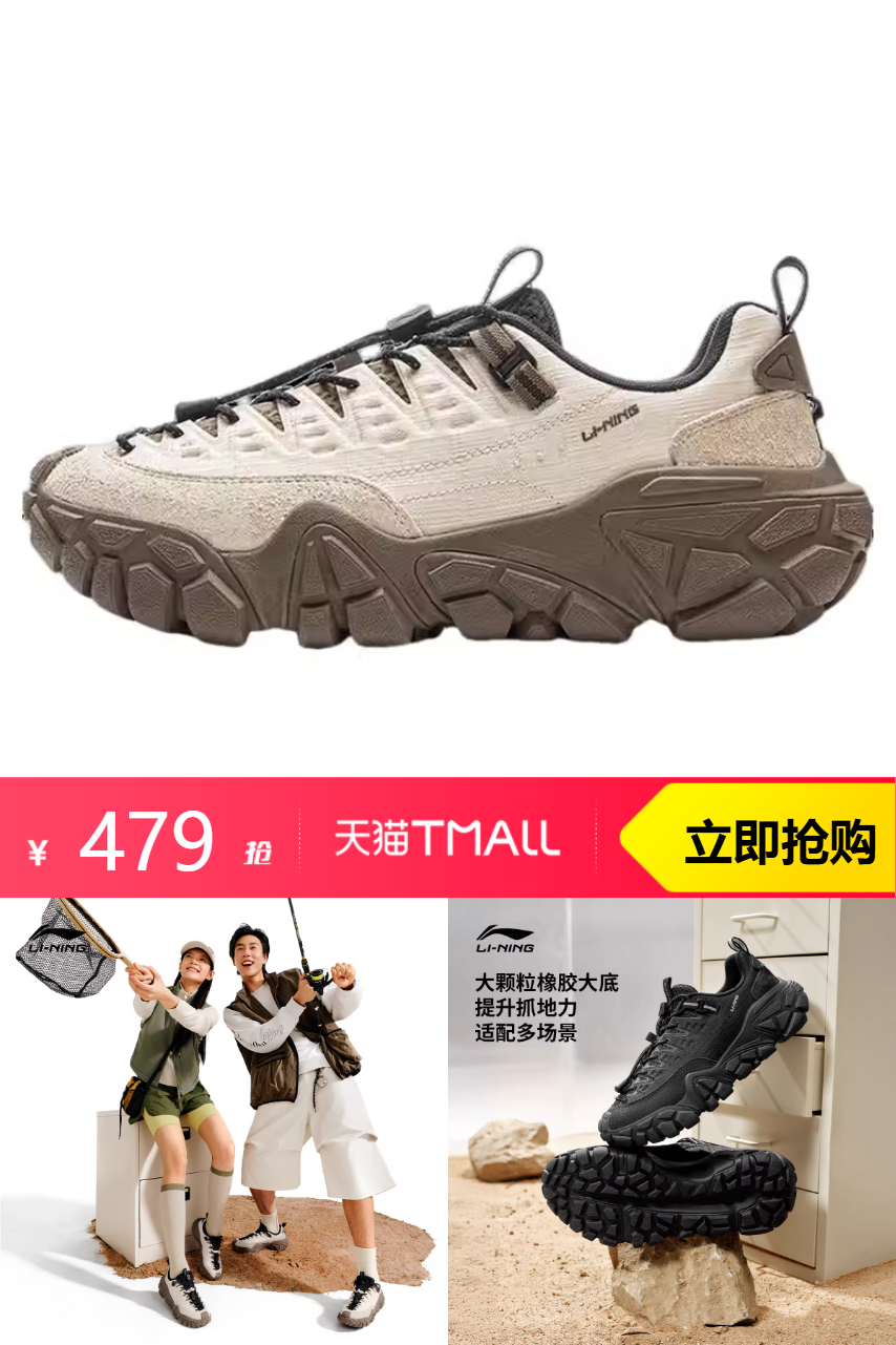 【淘金币14.37,消费券200-25,300-20运动户外券(自动叠加)最终到手279.9;可继续充值店铺购物金到手更低!得物339起】李宁沙丘丨休闲鞋男鞋冬季新款,修饰腿型, 显高显比例~山系设计,尽显户外风尚。防滑耐磨,登山无忧。