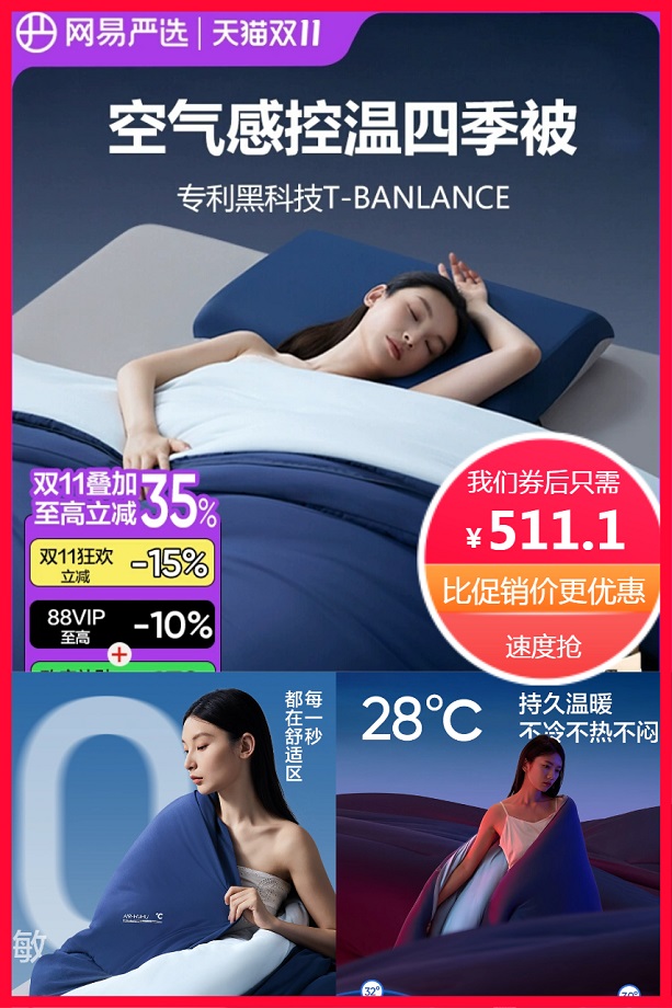 网易严选 网易严选懒人子母被控温被四季通用抗菌被子 11元减150 商品纠错