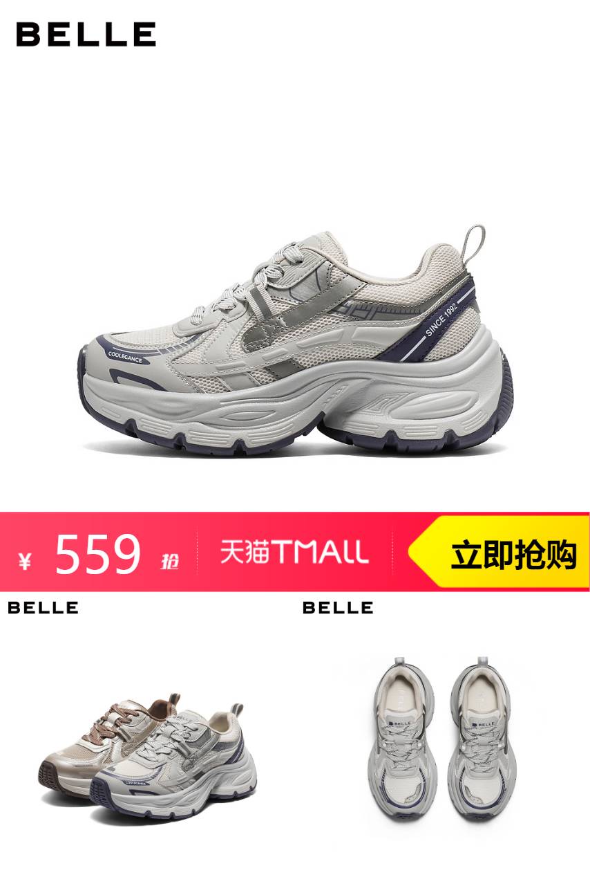 【(前4小时免50定金!到手只要318)领90券+服饰天降券599-60+消费券到手368】双11预售正在火热进行中!千万不要错过这次机会哦!抢购这双时尚又百搭的百丽银灰老爹鞋女鞋吧!你的穿搭已经迫不及待要迎接这个季节了