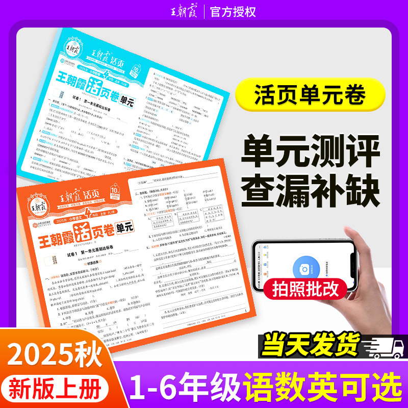 【原价9.9,领券立减5,叠加淘金币抵扣1.18,到手仅需3.72】2025秋新版小学王朝霞活页单元卷!王朝霞爆品试卷活页卷!热销千万册!!随用随撕!1-6年级齐全!全套单元测试卷期末冲刺卷,全程学习,全科无忧,题材新颖,字迹清晰,答题空间大,成绩稳步提升,让孩子赢在起跑线上!