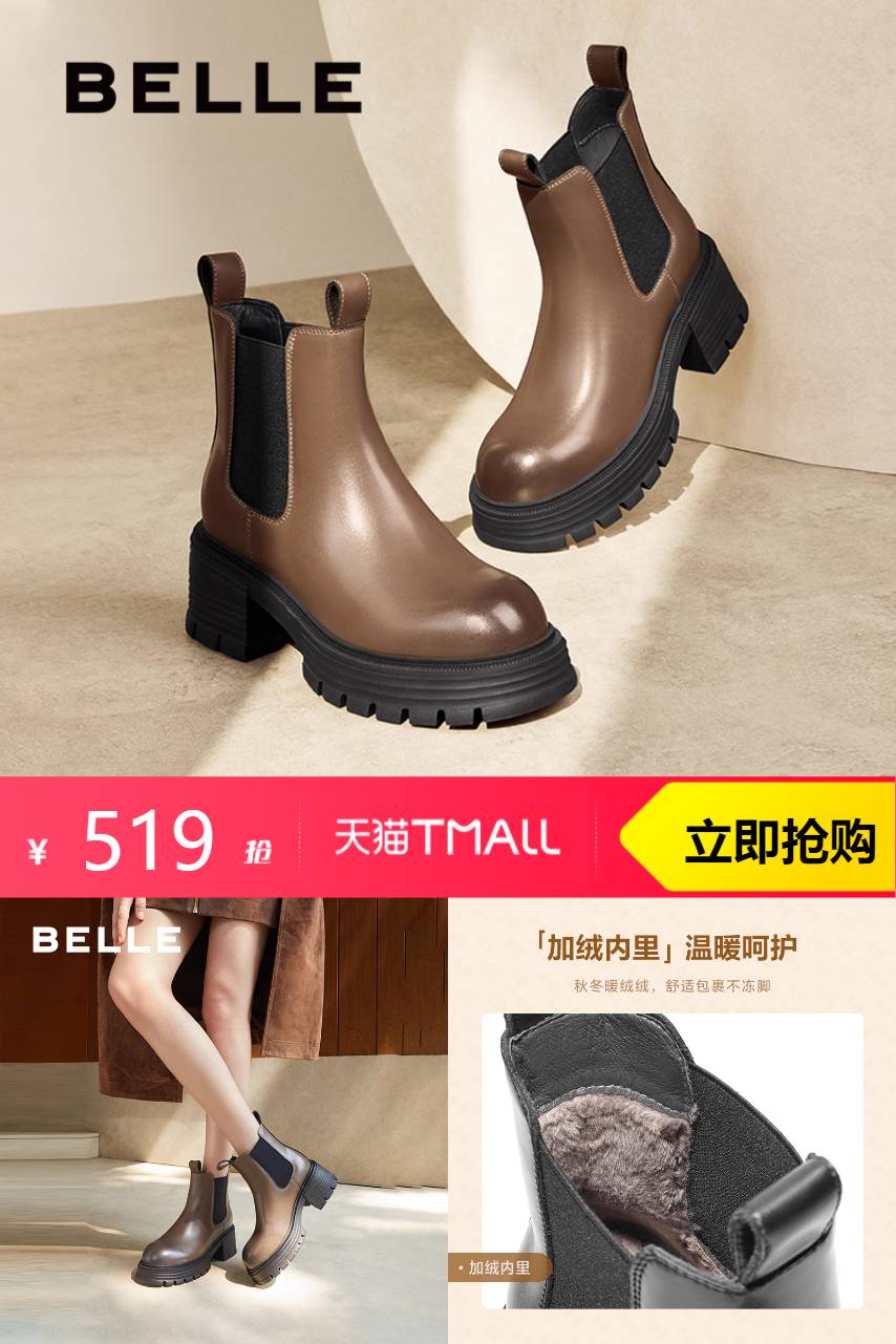 ⭕【双11预售】百丽厚底切尔西靴女冬季新款