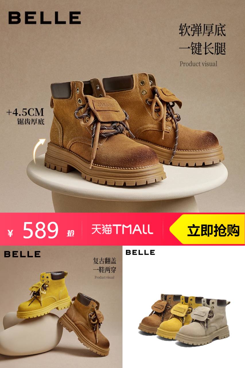 百丽 【双11预售】百丽马丁靴厚底翻盖大黄靴 694元减105 商品纠错