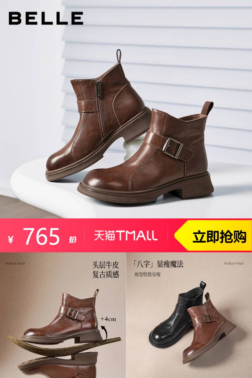 百丽 【双11预售】百丽黑巧靴抓皱真皮时装靴 900元减135 商品纠错