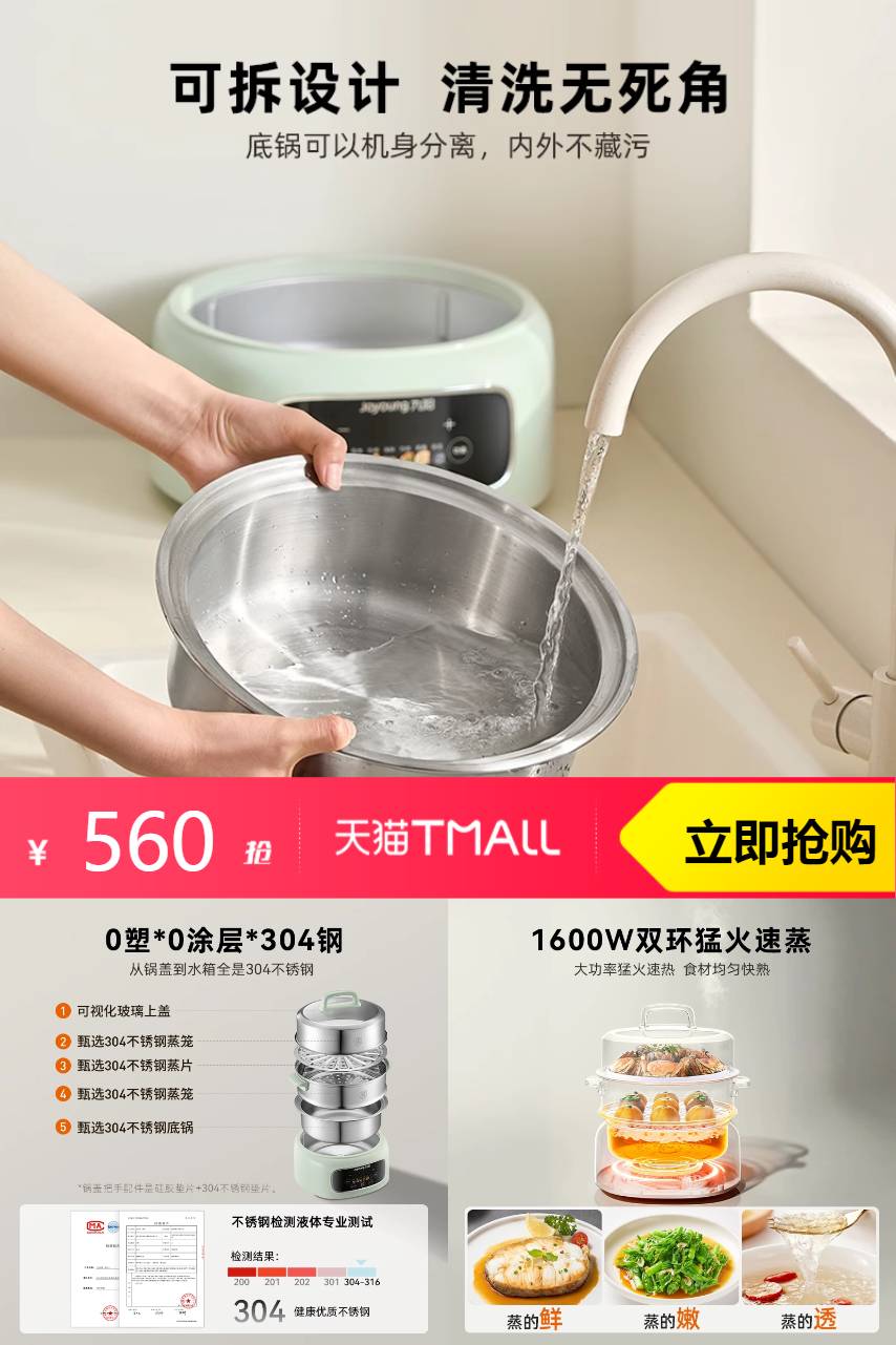 九阳 九阳家用多功能电蒸锅 659元减99 商品纠错