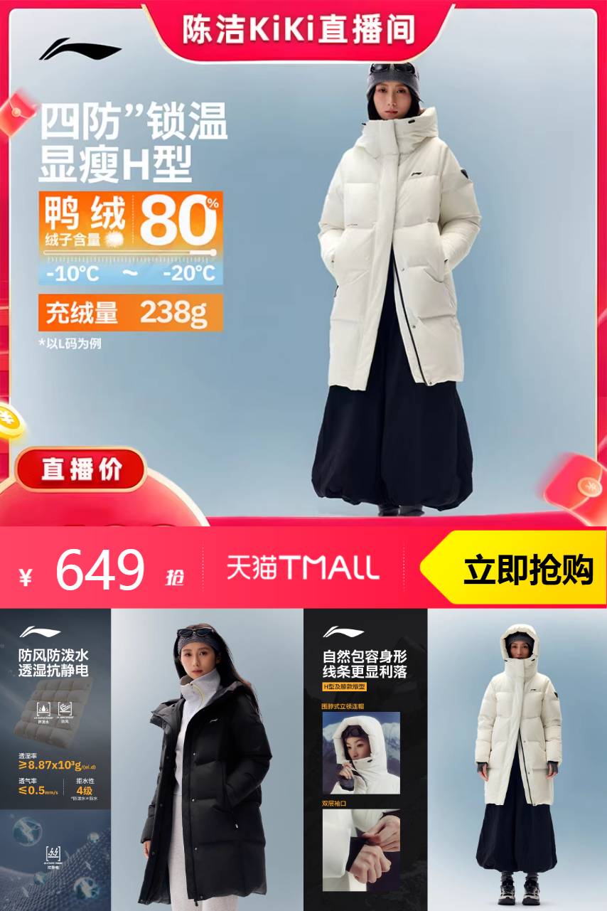 【达人直播间预售】李宁防护智暖羽绒,五重结构防泼水防风科技双重升温系统,从内到外,保暖防护更周全~