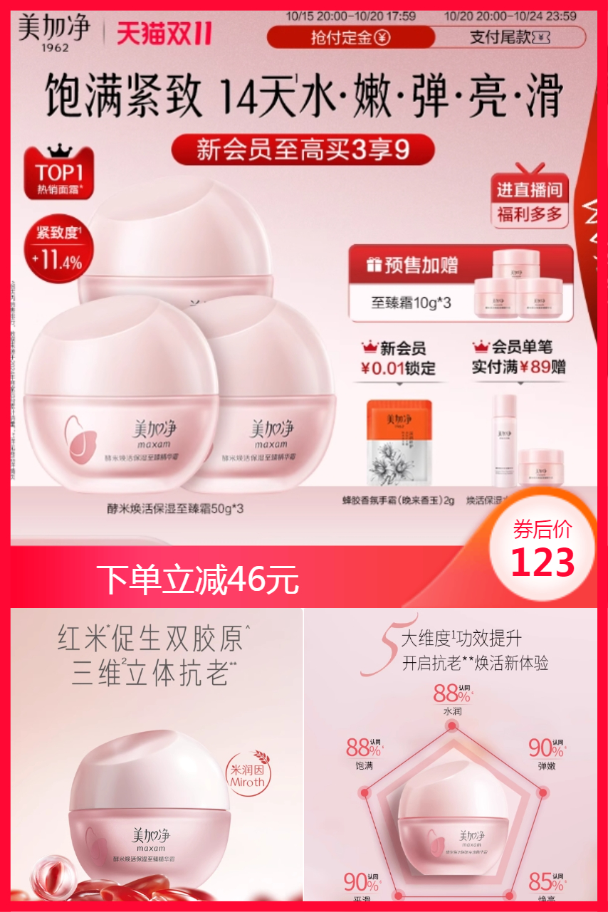 ⭕美加净至臻红米霜精华面霜50g*3罐