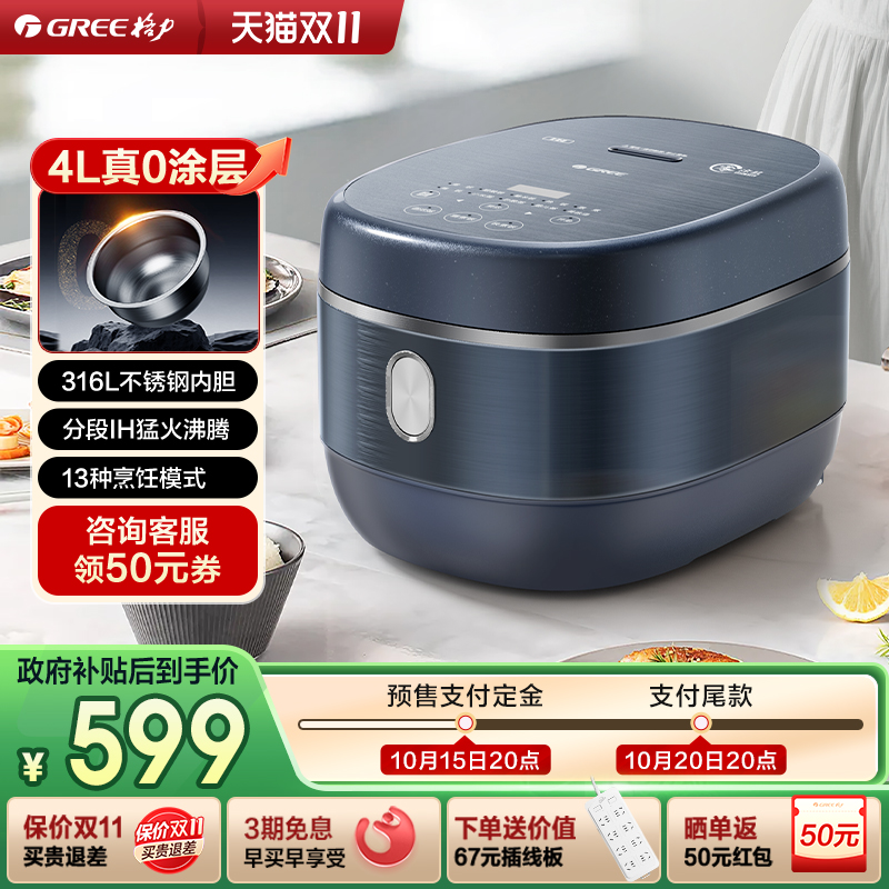 【全新升级】格力0涂层4L家用4-6人IH蒸煮一体不锈钢电饭煲,采用新科技,智能控制,节能省电,满足您烹饪的各种需求,是家庭厨房的理想选择。