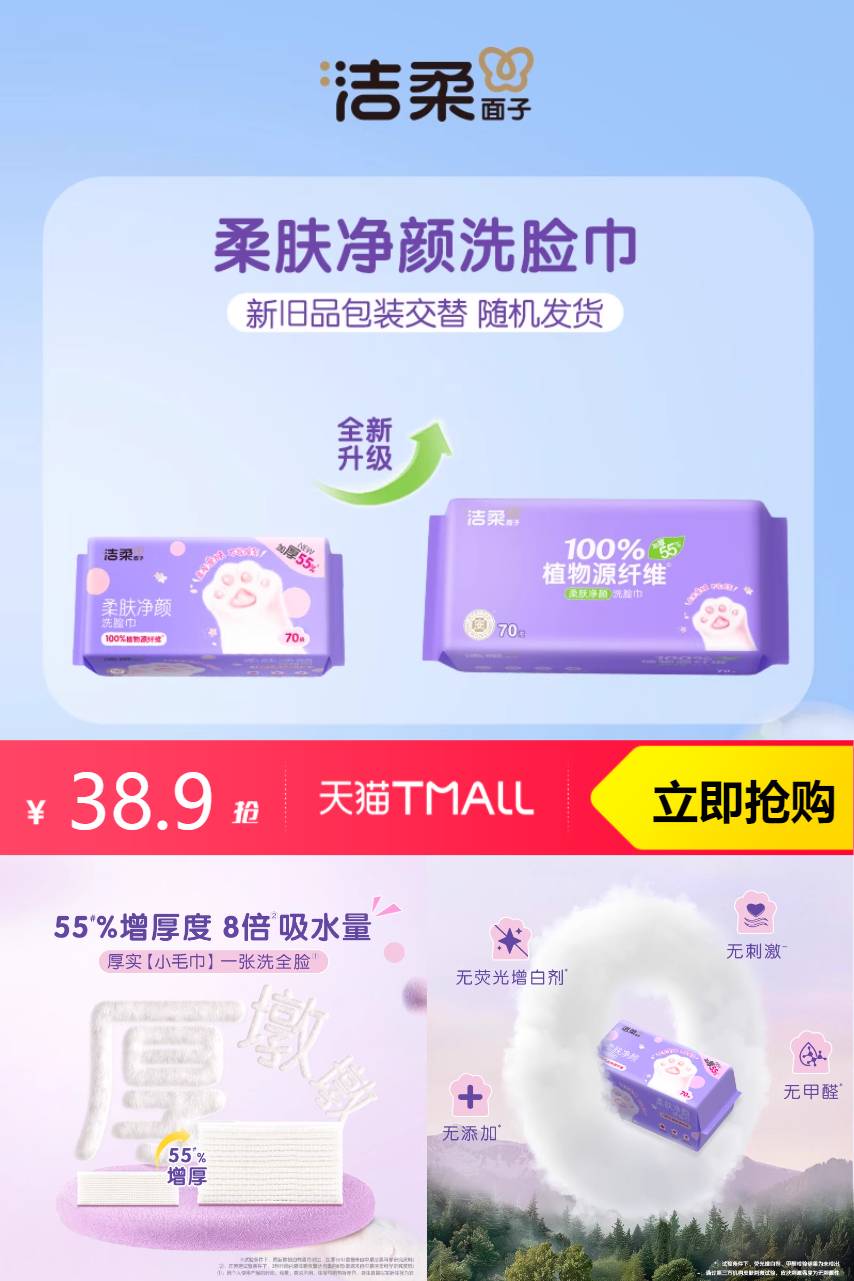 推荐:洁柔绵柔巾一次性洗脸巾加厚70抽3大包