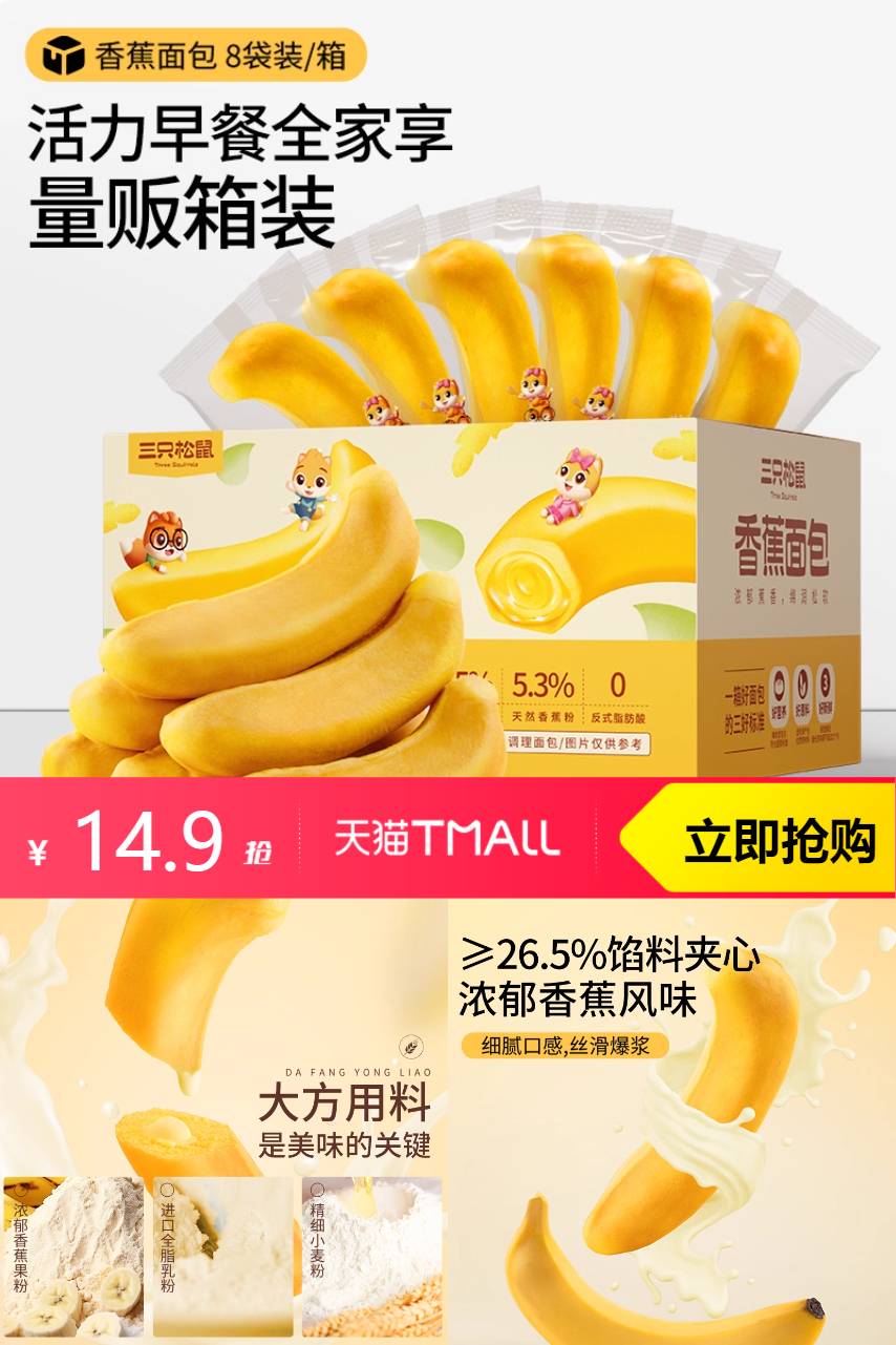 推荐:三只松鼠香蕉面包馅料夹心糕点心