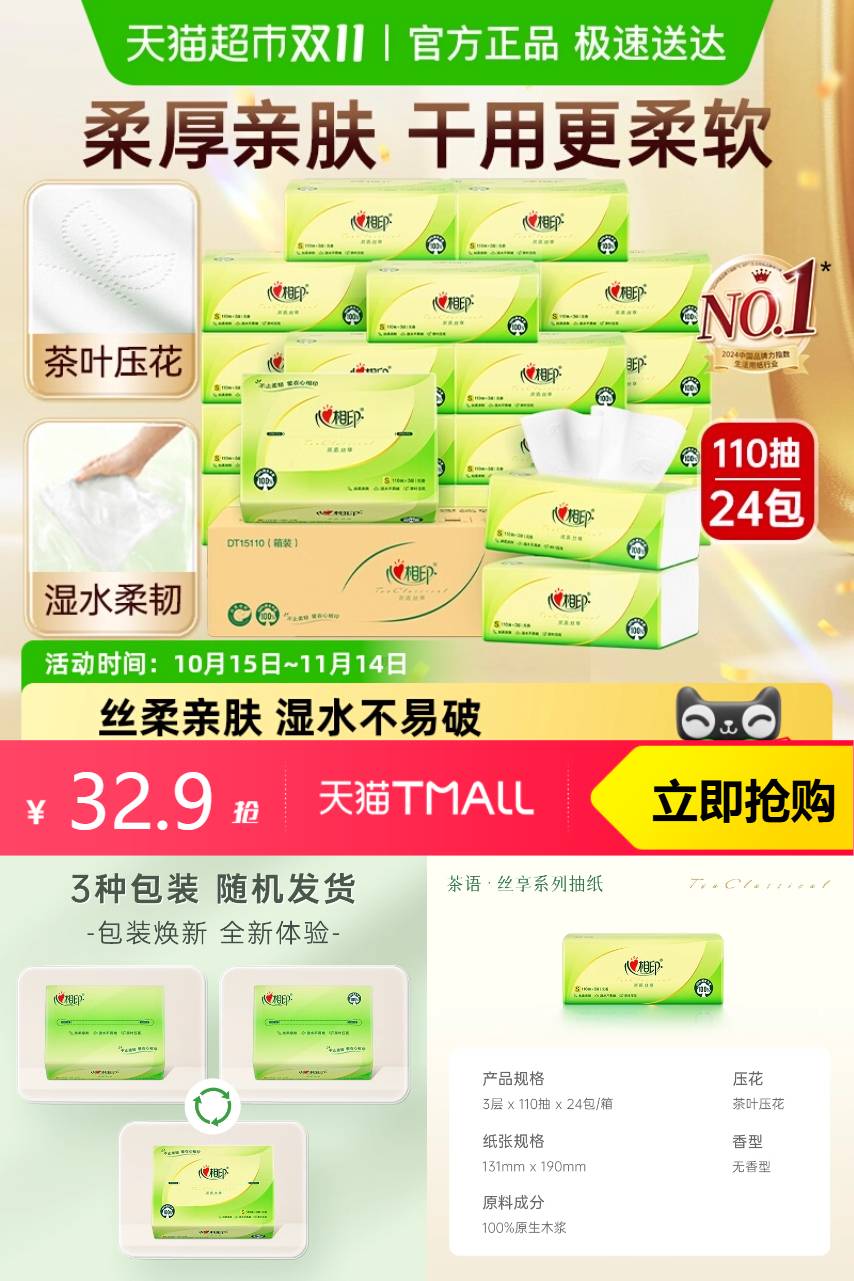推荐:心相印茶语丝享抽纸巾110抽24包
