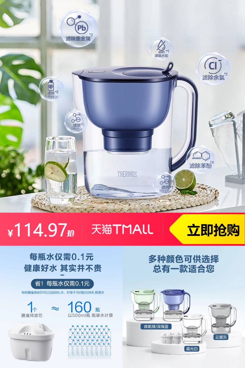 【官方立减54.03,首单礼金15,淘金币抵扣19.9,9折消费券,到手72.07】膳魔师的这款滤水壶采用了先进的过滤技术,能去除水中的杂质、异味和有害物质。