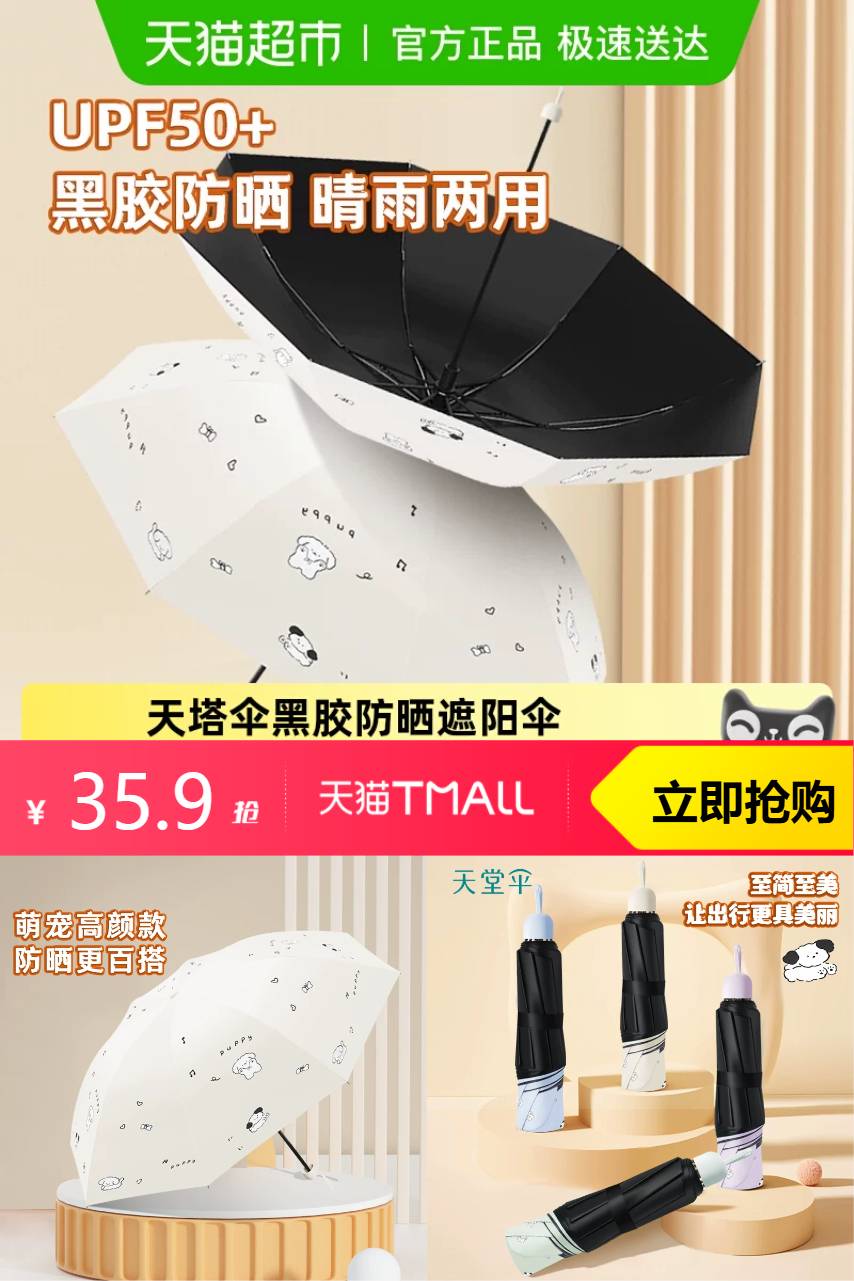 【原价49.9-直降14-88vip1.8-礼金2.51-金币4.48=27.11,叠消费券200-25,到手24左右】天堂伞萌宠黑胶伞,防晒防紫外线太阳伞,轻巧便携折叠两用晴雨伞,男女情侣伞。