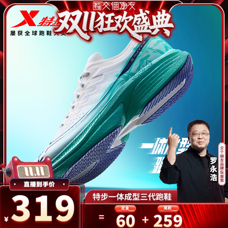 【交个朋友付定!20日晚8付尾款】特步一体成型三代跑鞋男运动鞋