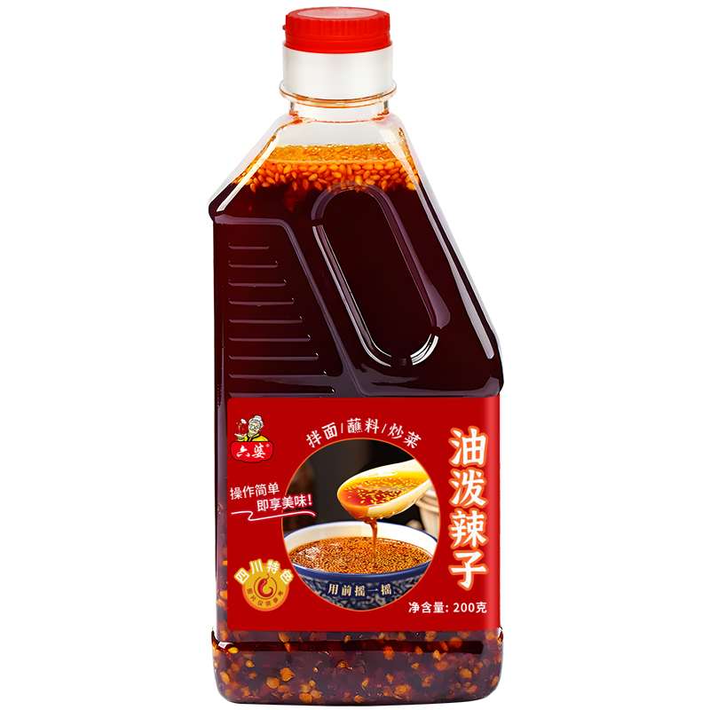 【券后价8.5,红包减0.73,到手价7.77】200g大容量,红油超香辣,拌凉皮、拌面、拌菜,一勺下去,瞬间香气扑鼻,麻辣鲜香,让你食欲大开,六婆油泼辣子香辣红油200g香辣麻辣。超赞·~
