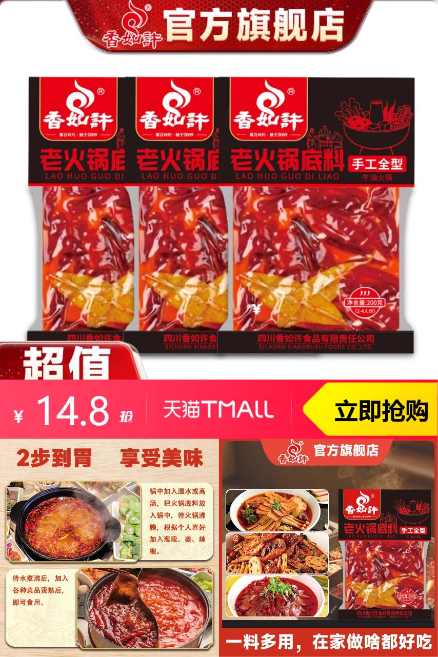 【拍2,淘金币0.39,合计400g到手14.41】正宗四川味道手工火锅底料,专做调味品17年 香如许手工底料~