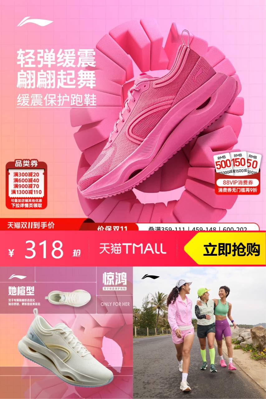 【可叠李宁大额券1000-170,户外品类券,消费9折券,9.4折购物金到162左右;得物228起!】李宁惊鸿 | 跑步鞋女款秋季新款,女子专属鞋檀形态优化贴合舒适,更彰显优美足态~