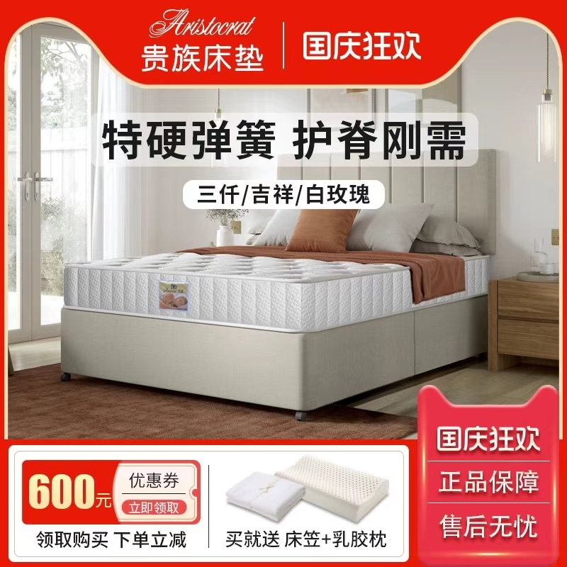 【淘金币72.87,20号晚八点9折消费券,领政府补贴15%,到手1177.89】贵族床垫2.6特硬弹簧床垫席梦思乳胶记忆海绵床垫1.8m1.5米双人床,超赞~