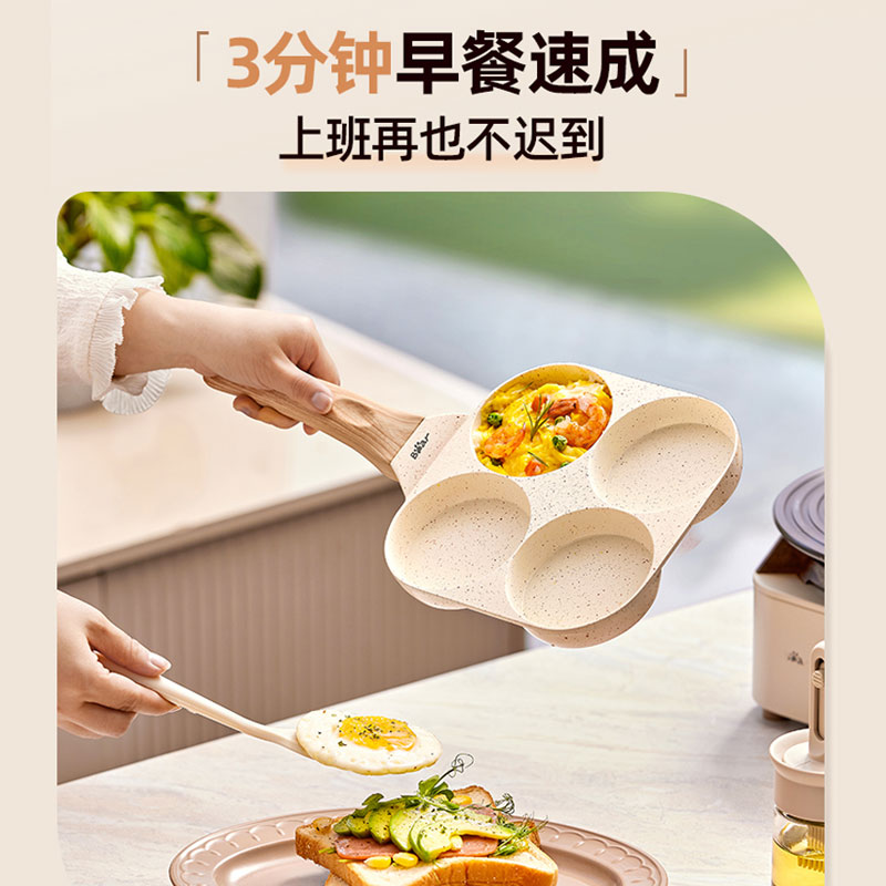 【官方立减53,立减90,淘金币抵扣3,无门槛9折,到手价47.7】小熊煎蛋锅早餐锅四孔鸡蛋汉堡锅加深煎锅,超赞~