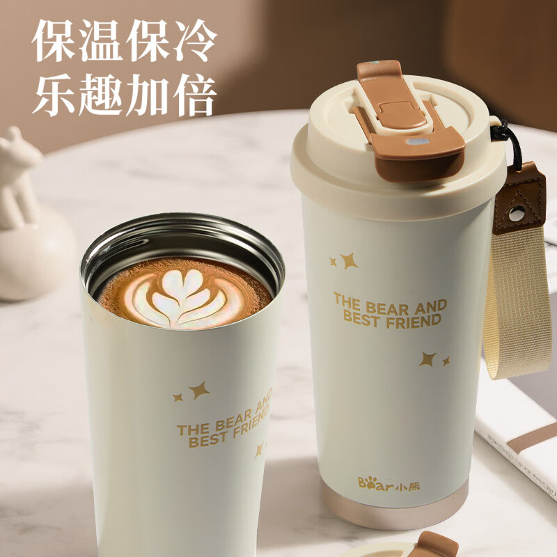 【官方立减30,立减100,无门槛9折,到手价53.1】小熊保温杯咖啡杯外出携带保冷杯不锈钢吸管,超赞~
