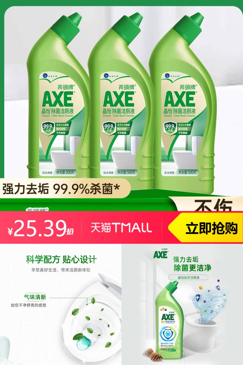 【淘金币抵扣0.51,到手价25.39】别再为马桶清洁发愁,AXE斧头牌洁厕灵是你的省钱好帮手。3瓶超值组合,有效去除尿垢、异味。杀/菌/率/达百分之九十九,花同样的钱,给你更优的清洁体验!