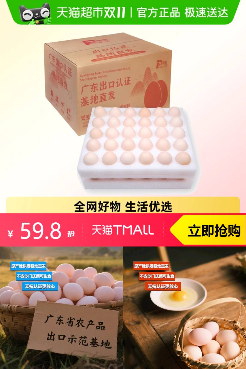 【9折优惠券5.98-淘礼金抵扣5.98-直播间券2元-直播间补贴11.8-88vip到手后31.05!!叠加红包到手更低】供港基地粮食鲜鸡蛋可生食,供港基地直发不含沙门氏菌通过无抗认证可生食顺丰包邮~