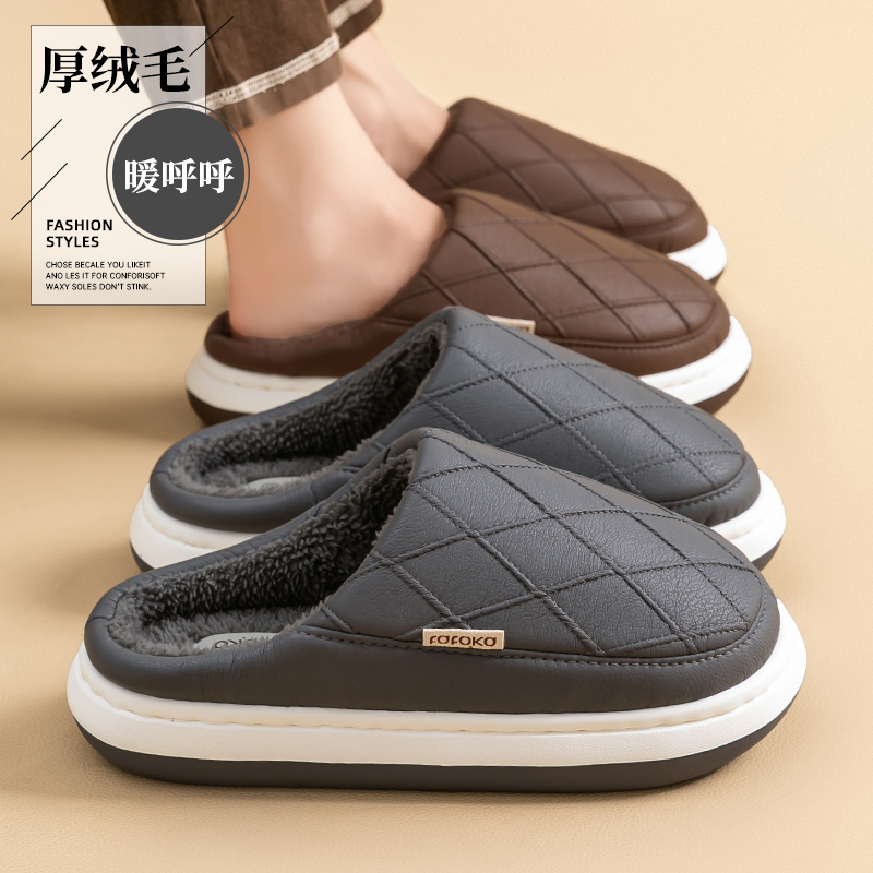 防水棉拖鞋男士秋冬季2025新款加厚室内家居防滑厚底皮棉拖男冬天