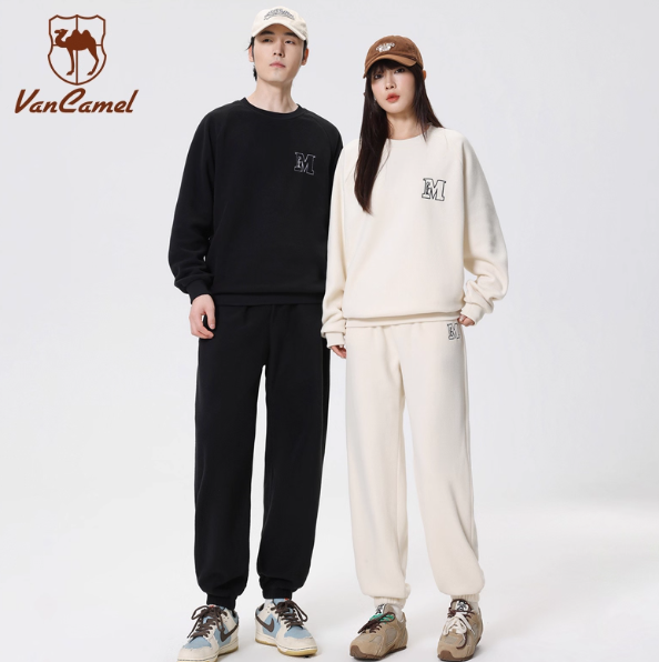 西域骆驼初秋情侣款运动休闲套头衫卫裤套装,亲肤体验,柔软垂顺!