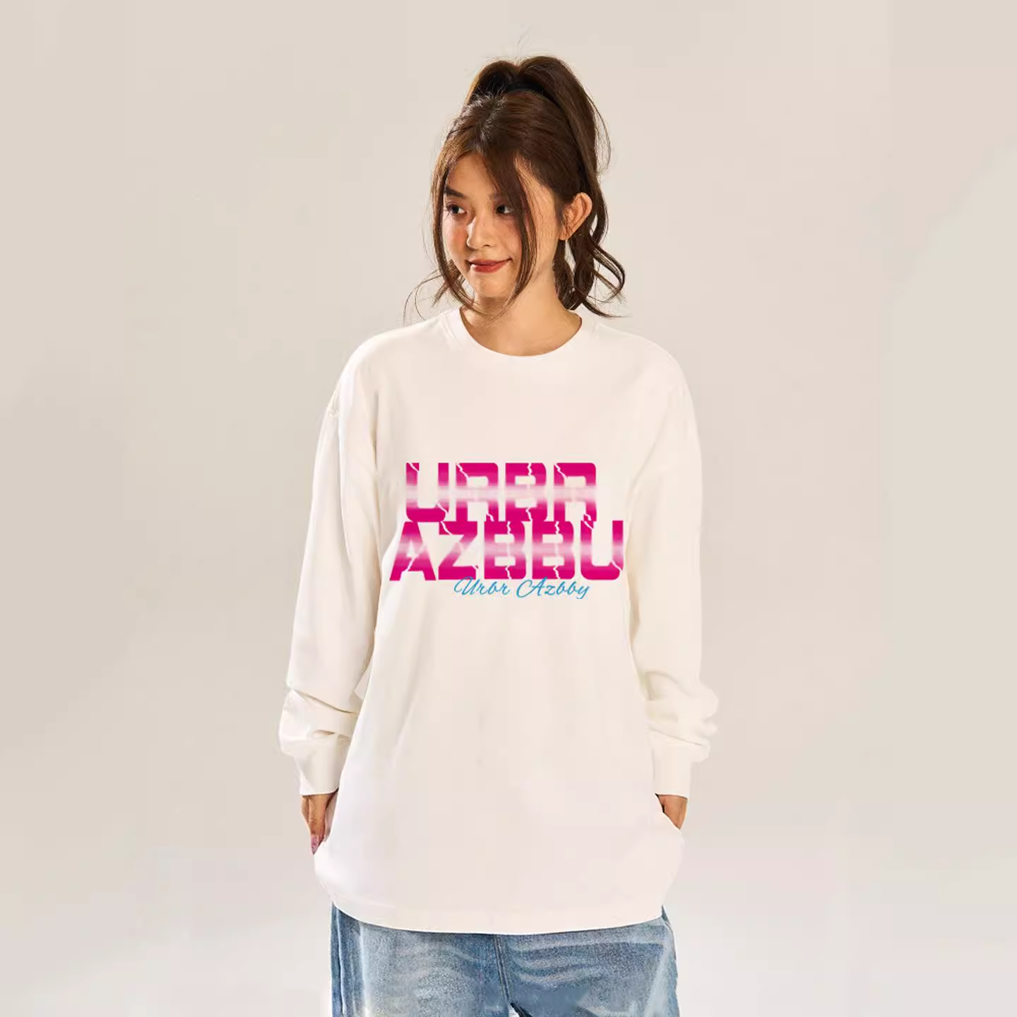 URBR AZBBU官方正品秋季印花设计潮牌宽松长袖打底纯棉T恤