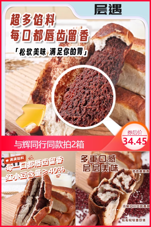 【与辉同行同款】一箱合到17.2,直播抢不到,红豆含量≥40%,0反式脂肪酸,松软三分甜,多层口感,层层美味,新鲜短保20天,甄选东北黑土地红小豆,香软绵密,配方清洁更安心。