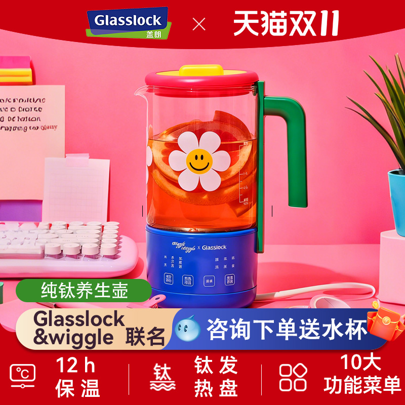 盖朗电器旗舰店推出玻璃锁与wiggle wiggle联名养生壶,小巧便携,适合办公室使用。采用优质不锈钢材质,安全耐用。内置智能温控系统,控制温度,泡茶效果。随时随地享受健康养生生活。