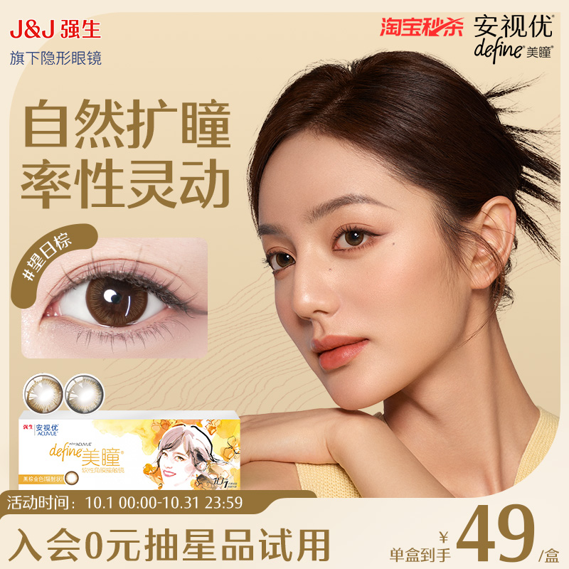 强生美瞳日抛安视优旗舰店舒适彩色隐形眼镜10片大直径棕色正品